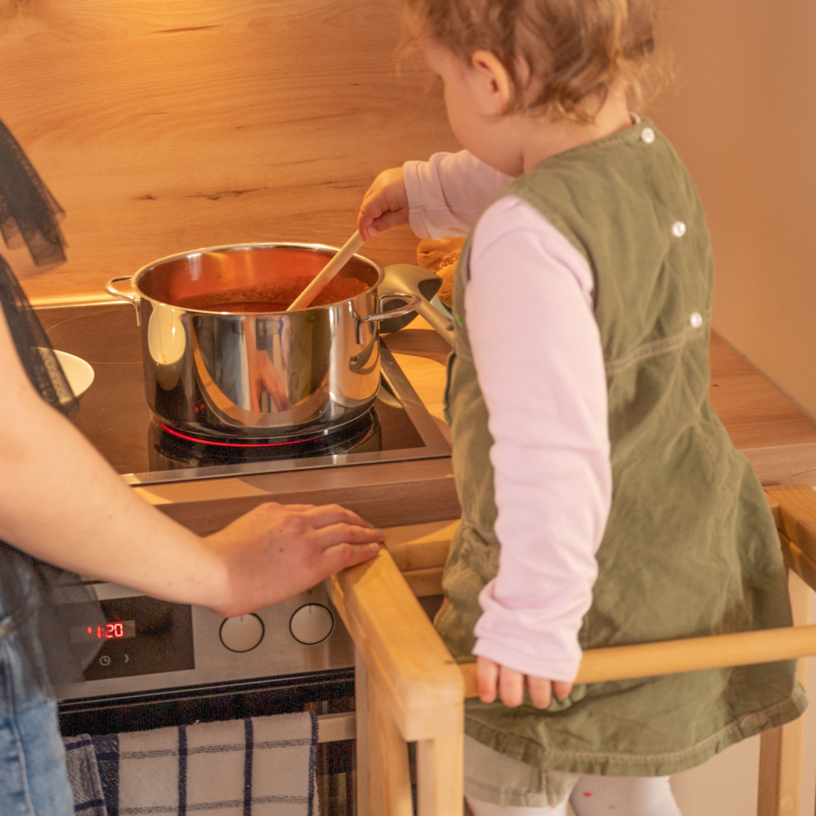 Zur gesunden Entwicklung Ihres Kindes trägt auch eine ausgewogene Ernährung bei. Wir setzen auf frische, gesunde und abwechslungsreiche Kost. Das tägliche Mittagessen wird frisch zubereitet. Das Vesper für das Frühstück darf von den Eltern selbst mitgebracht werden. So wird auch auf Vorlieben jedes einzelnen Kindes eingegangen. Zum Frühstücken gehen wir gerne auch mal auf unser nah gelegenes Wiesengrundstück, um im Anschluss zu spielen, zu toben und die Natur erkunden zu können. Für das Essen kann sich Ihr Kind die Zeit nehmen, die es braucht. Dabei lernt es spielerisch verschiedene Zutaten und Geschmacksarten kennen. Auf diese Weise wird die natürliche Neugier Ihres Kindes geweckt und es entwickelt Spaß am Essen. Selbstverständlich haben alle Kinder in der Kindertagespflege BiBaButzemann in Bezgenriet das Recht, selbst zu entscheiden, was und wie viel sie essen und trinken möchten. Wenn Ihr Kind aus gesundheitlichen Gründen eine besondere Ernährung braucht oder Sie Wünsche bezüglich der Ernährung haben, werden wir Ihre Ansprüche beachten.